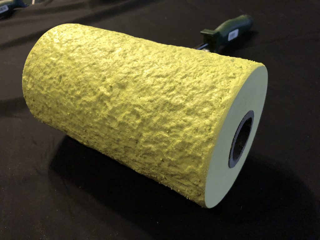 The stamp roller is used during the finishing stage of the curbing process, immediately after the curb has been extruded and initially troweled.