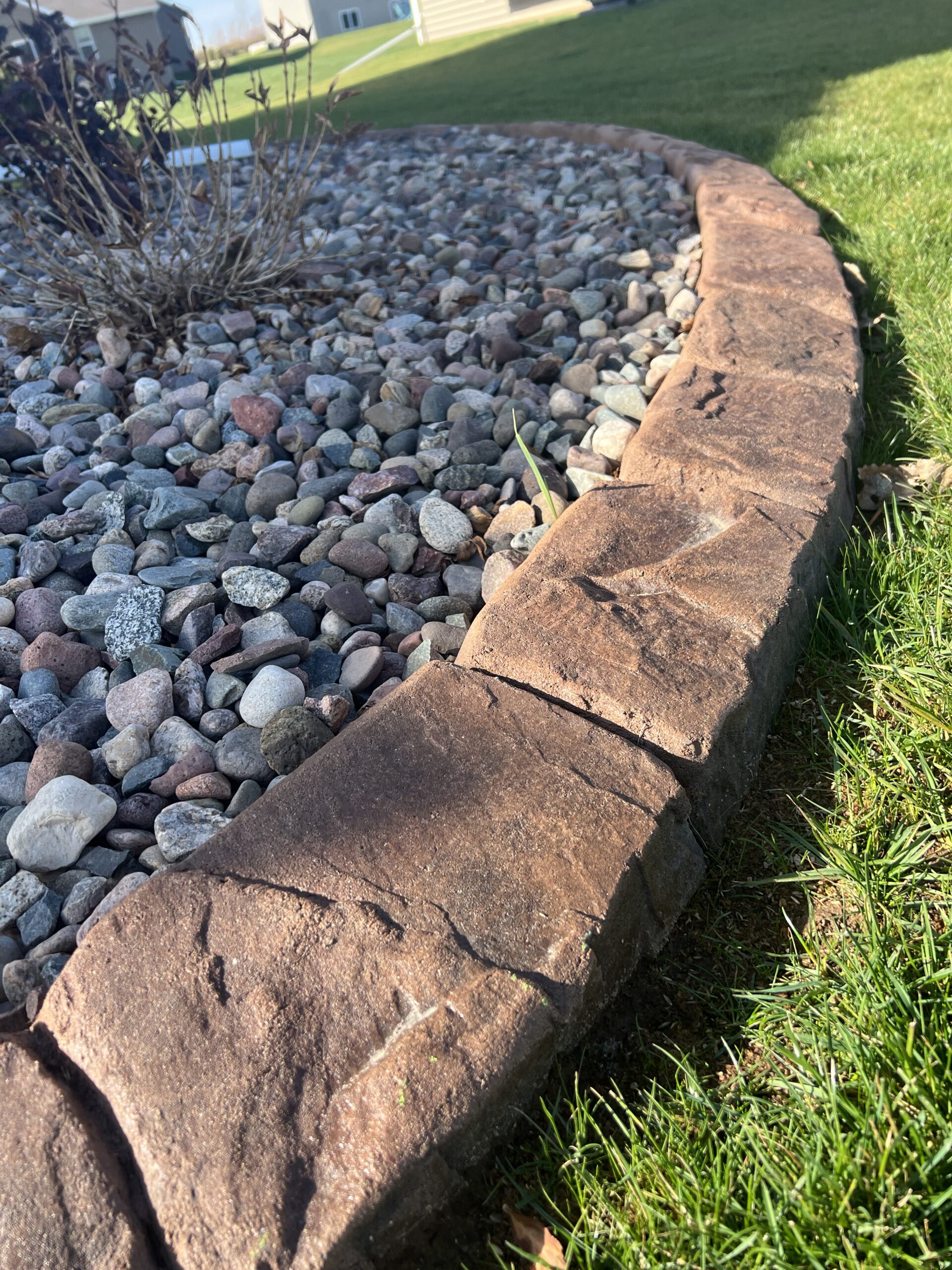 Though aesthetically pleasing, loose rocks can shift, and weeds can grow between them. It may not produce the clean lines that other options offer. Plus, it can be challenging to mow around without scattering the stones.